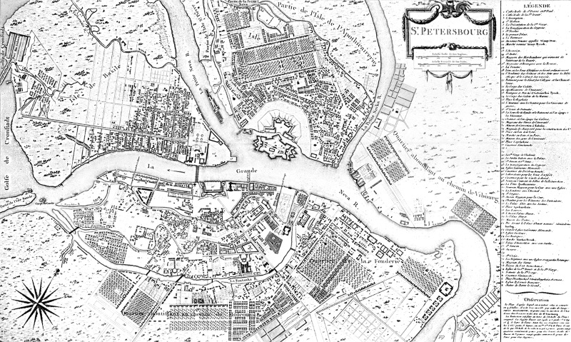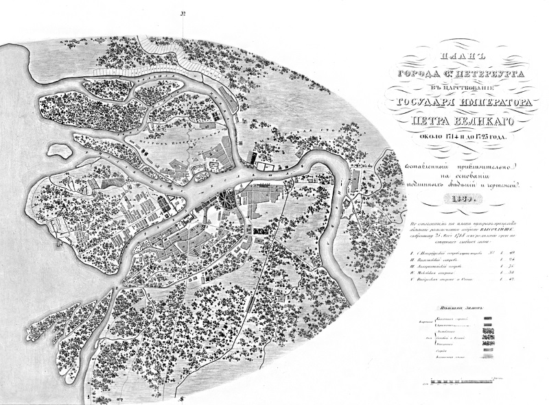 План Санкт-Петербурга. 1714–1725 гг. Фрагмент. Пересечение Невской перспективы и Фонтанки