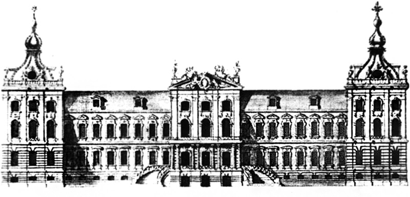 М. Земцов. Фасад Аничкова дворца с куполами на боковых ризалитах